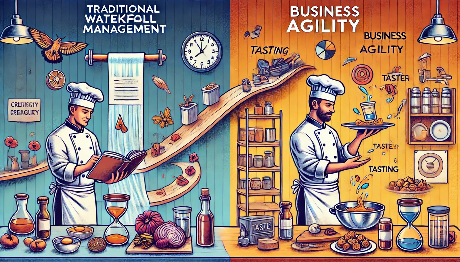 Waterfall management is a strict recipe, while agility is improvisational cooking.